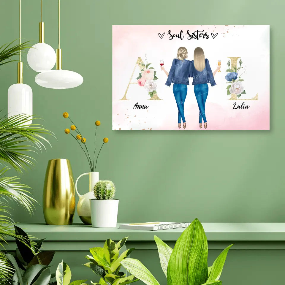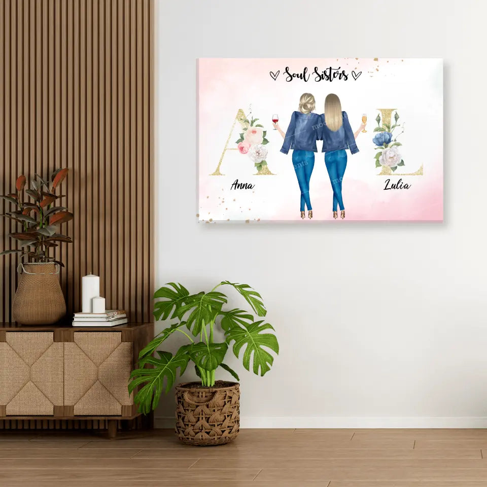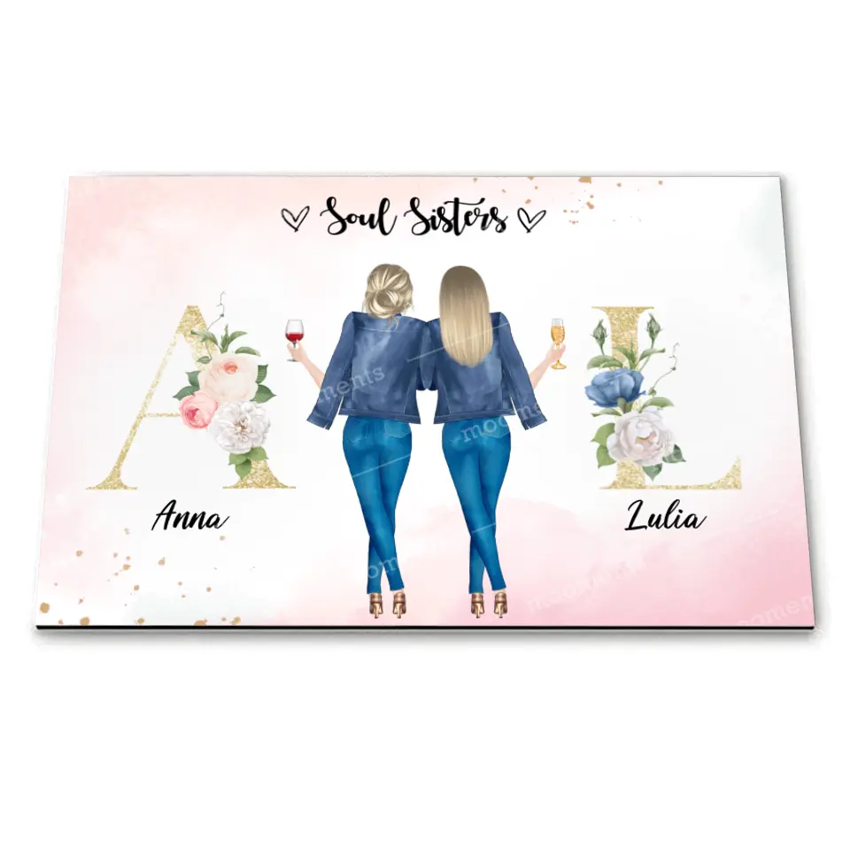2 Freundinnen mit geblümten Buchstaben - Alu-Dibond