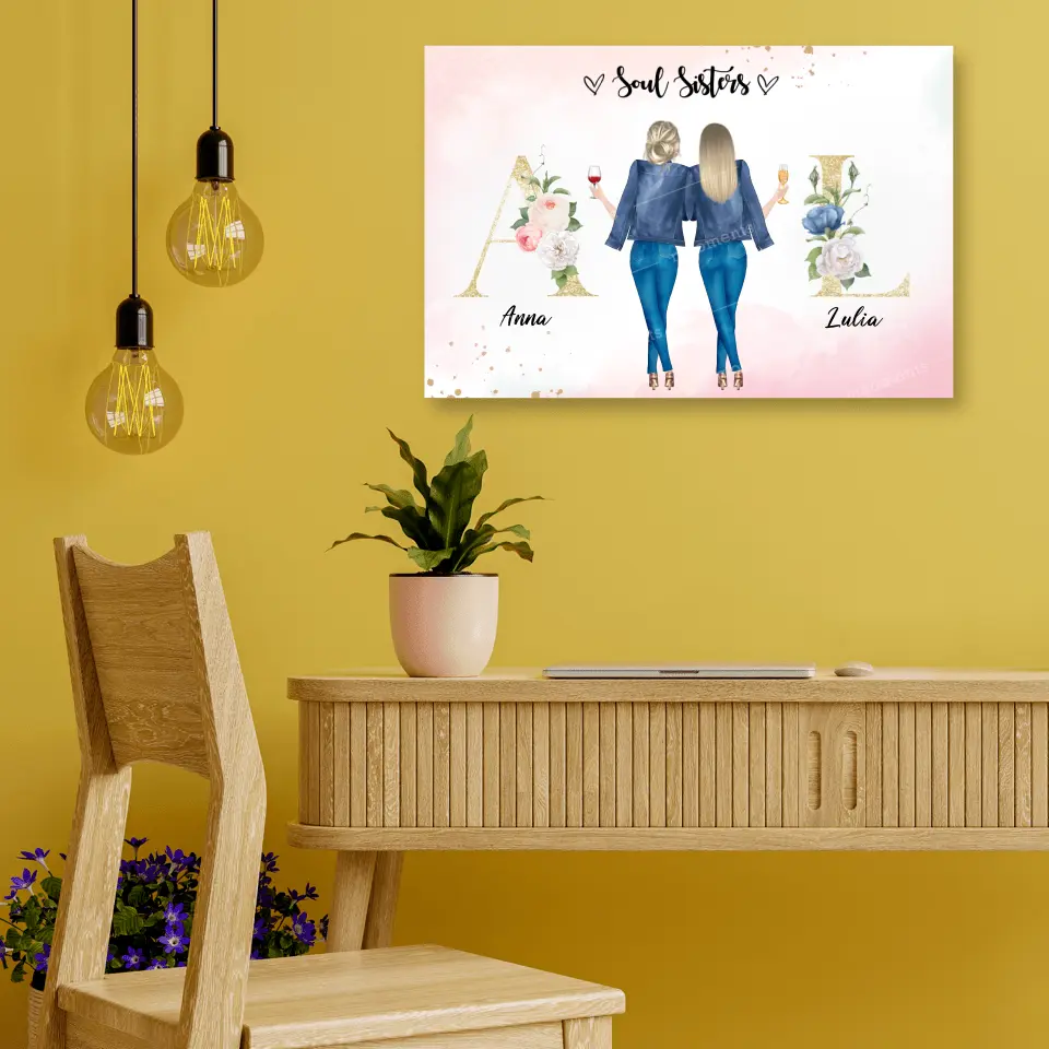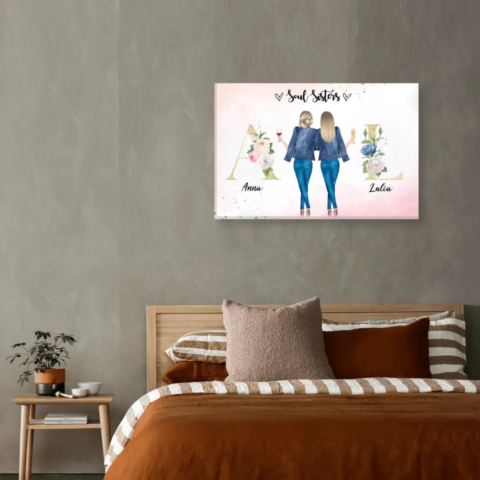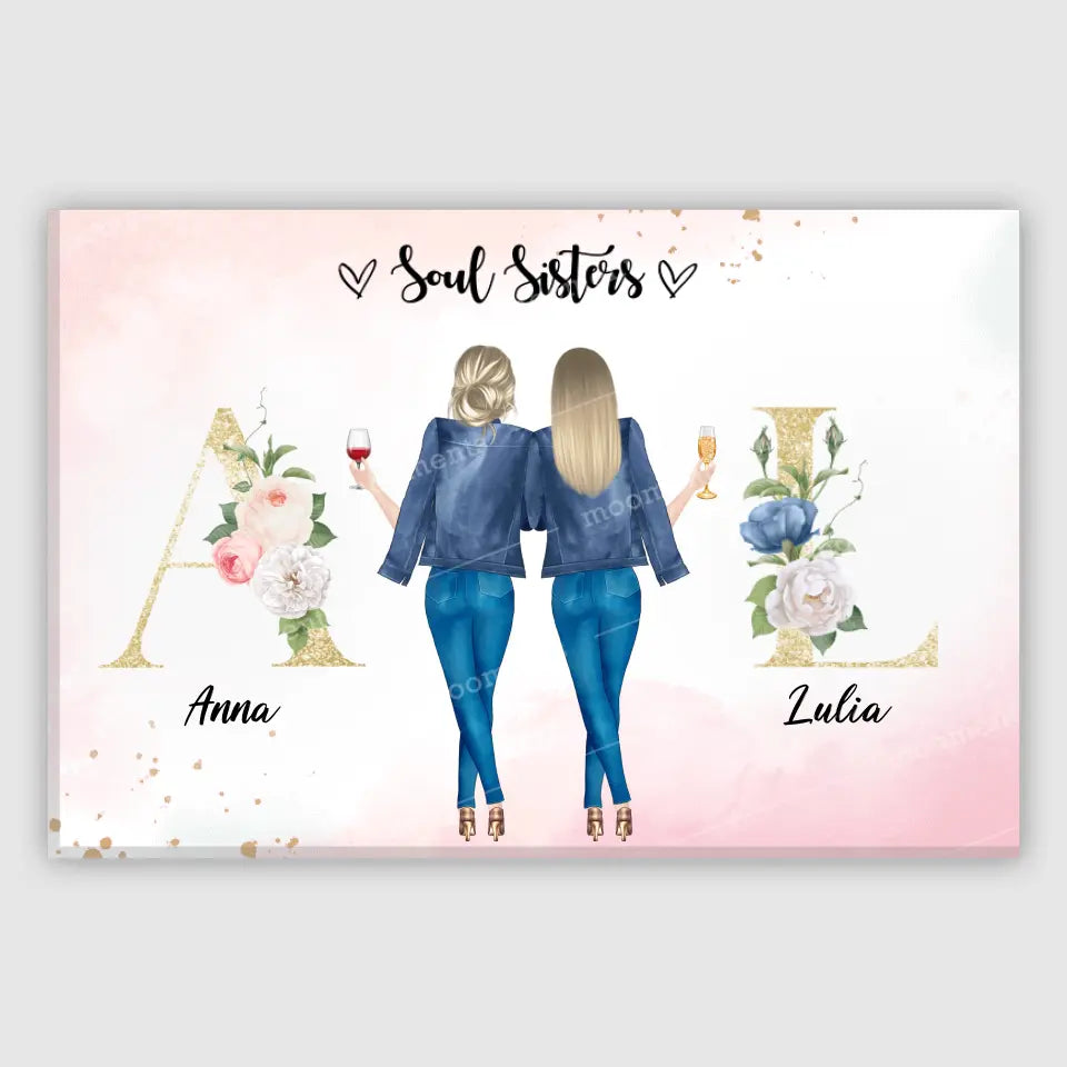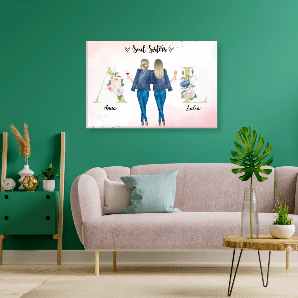2 Freundinnen mit geblümten Buchstaben - Alu-Dibond