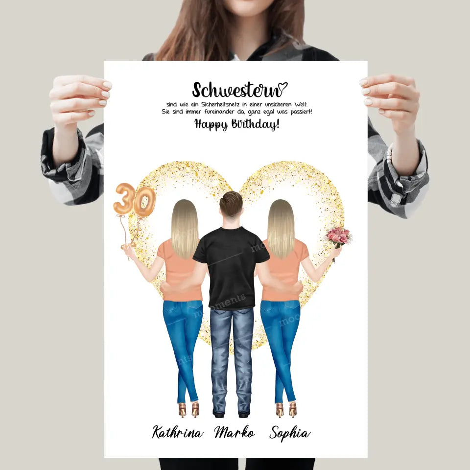3 Freundinnen - Personalisiertes Geburtstagsgeschenk - Poster