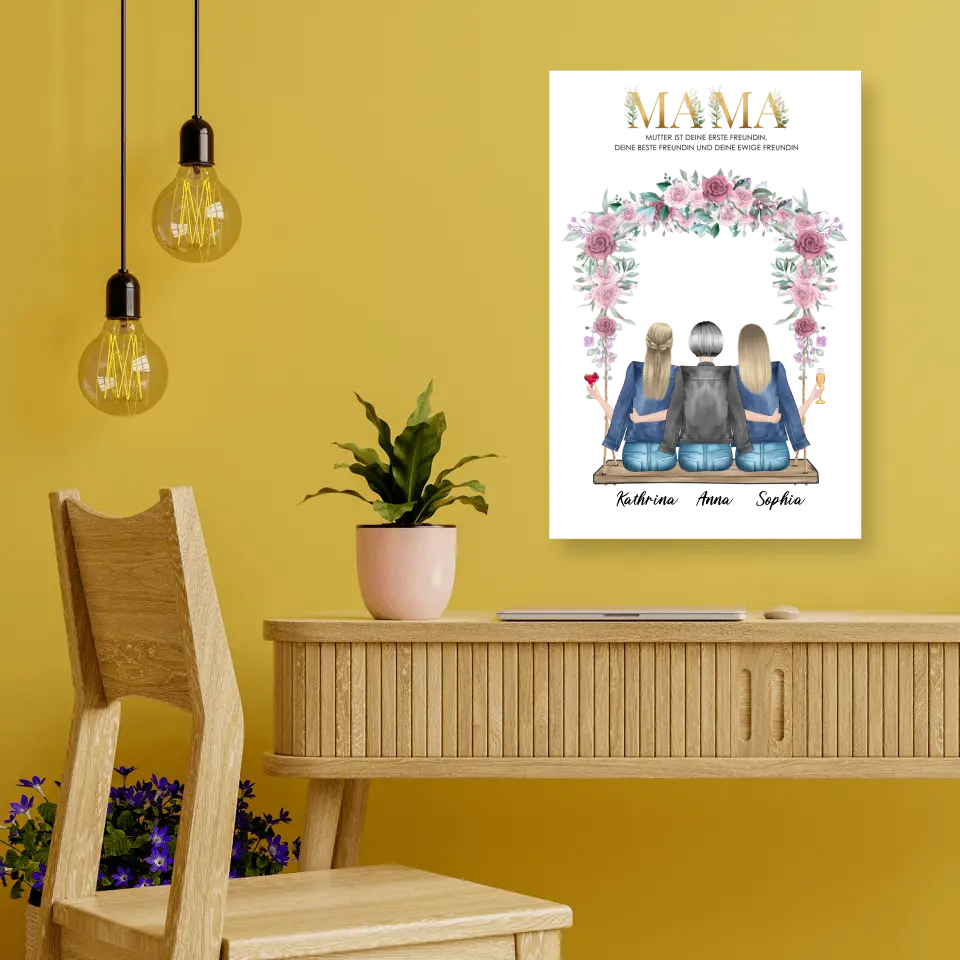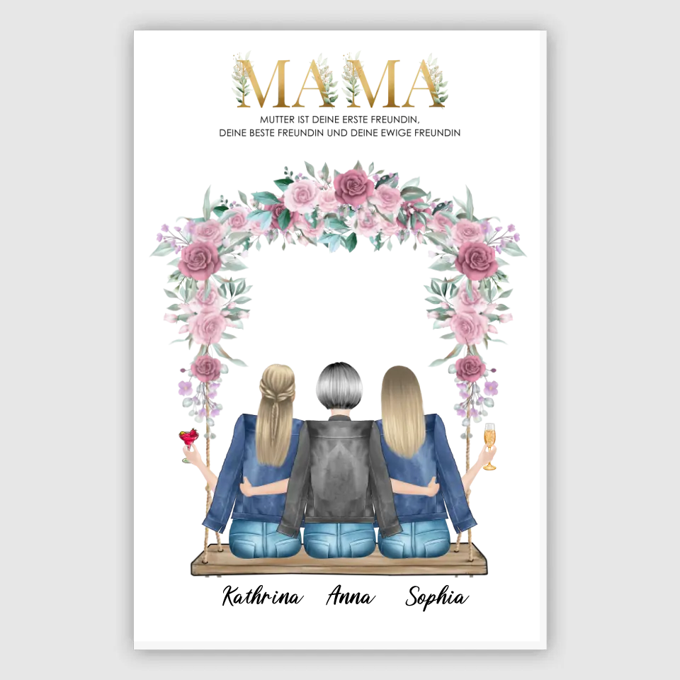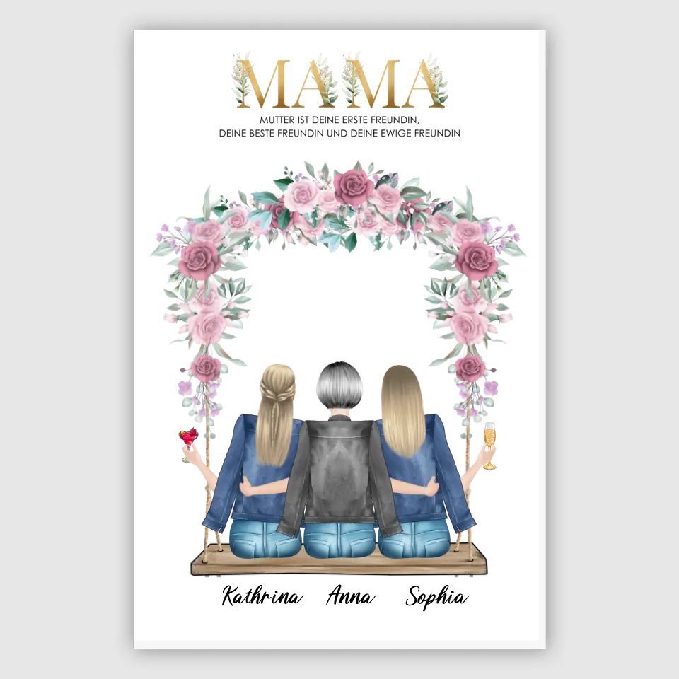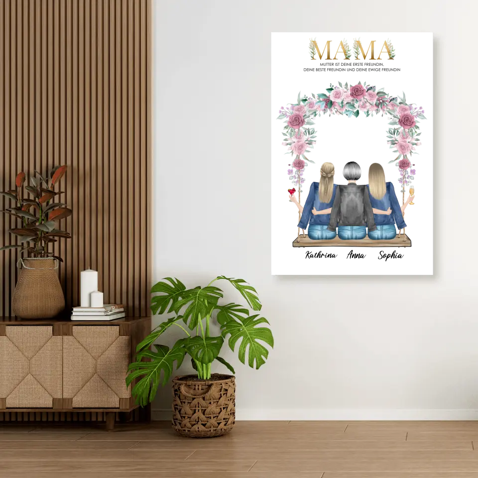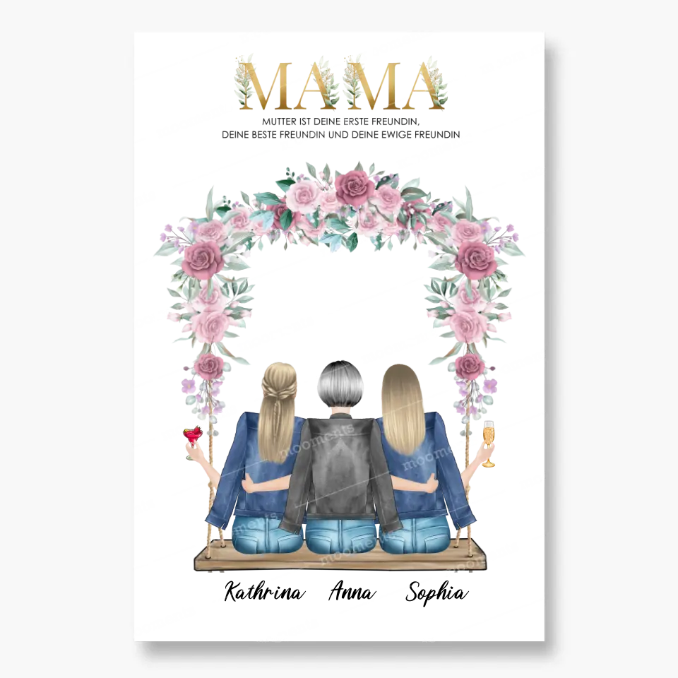 Mama und zwei Töchter sitzen auf der Schaukel - Poster