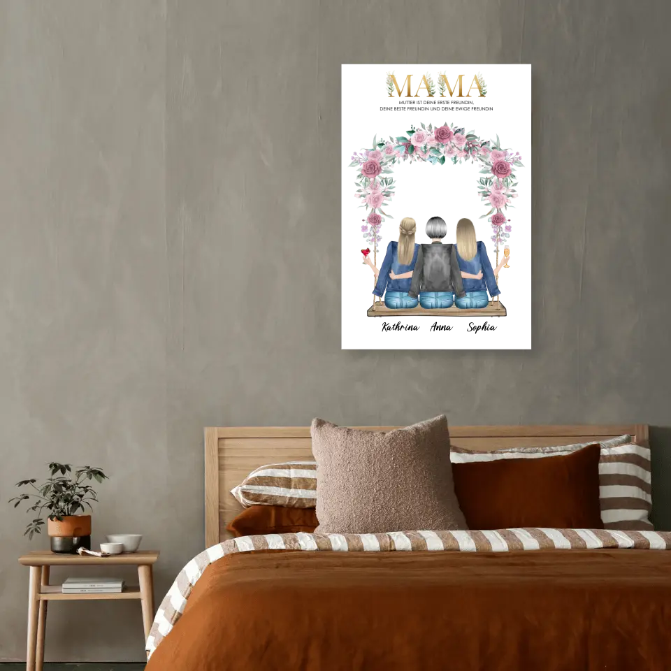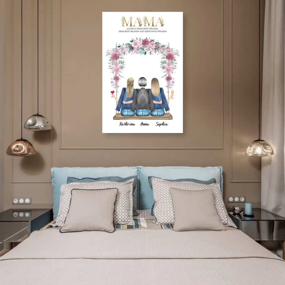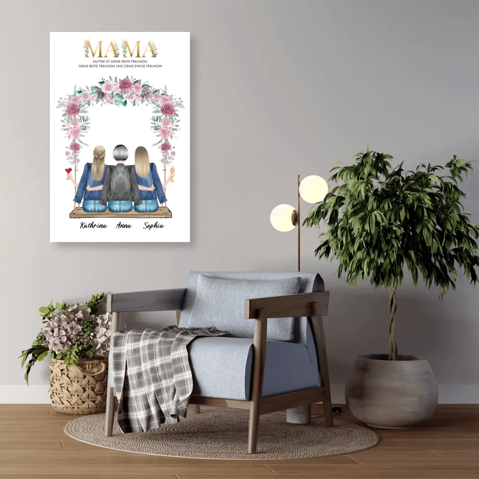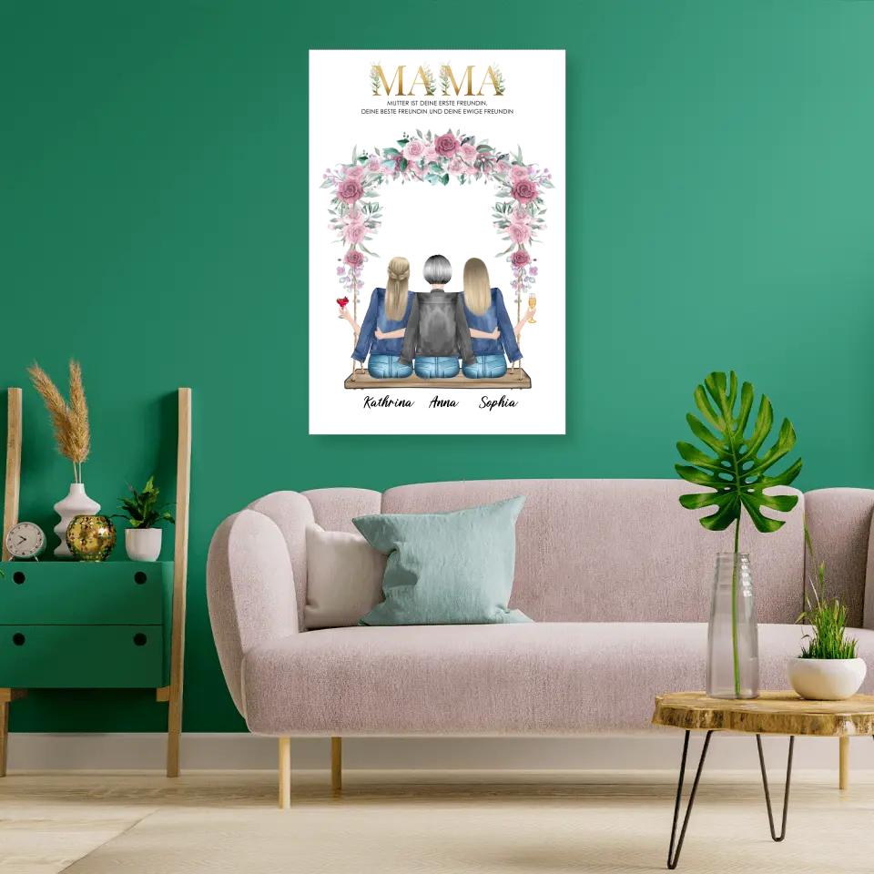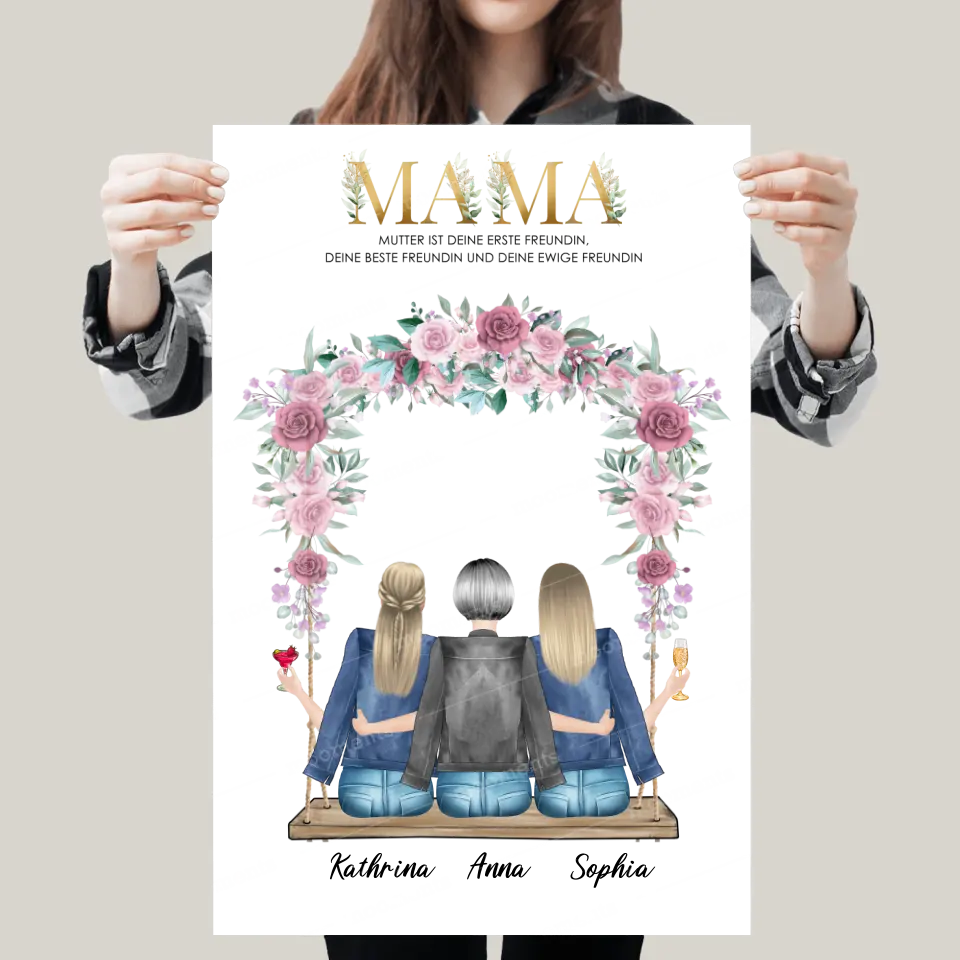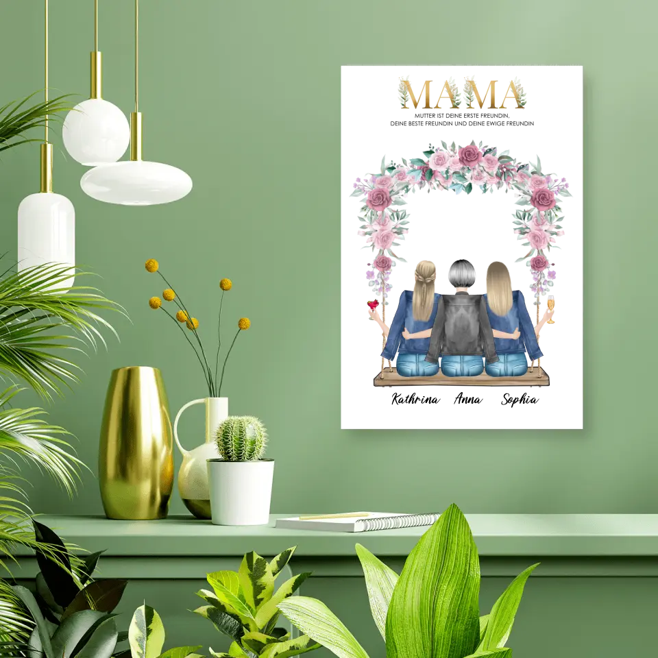Mama und zwei Töchter sitzen auf der Schaukel - Poster
