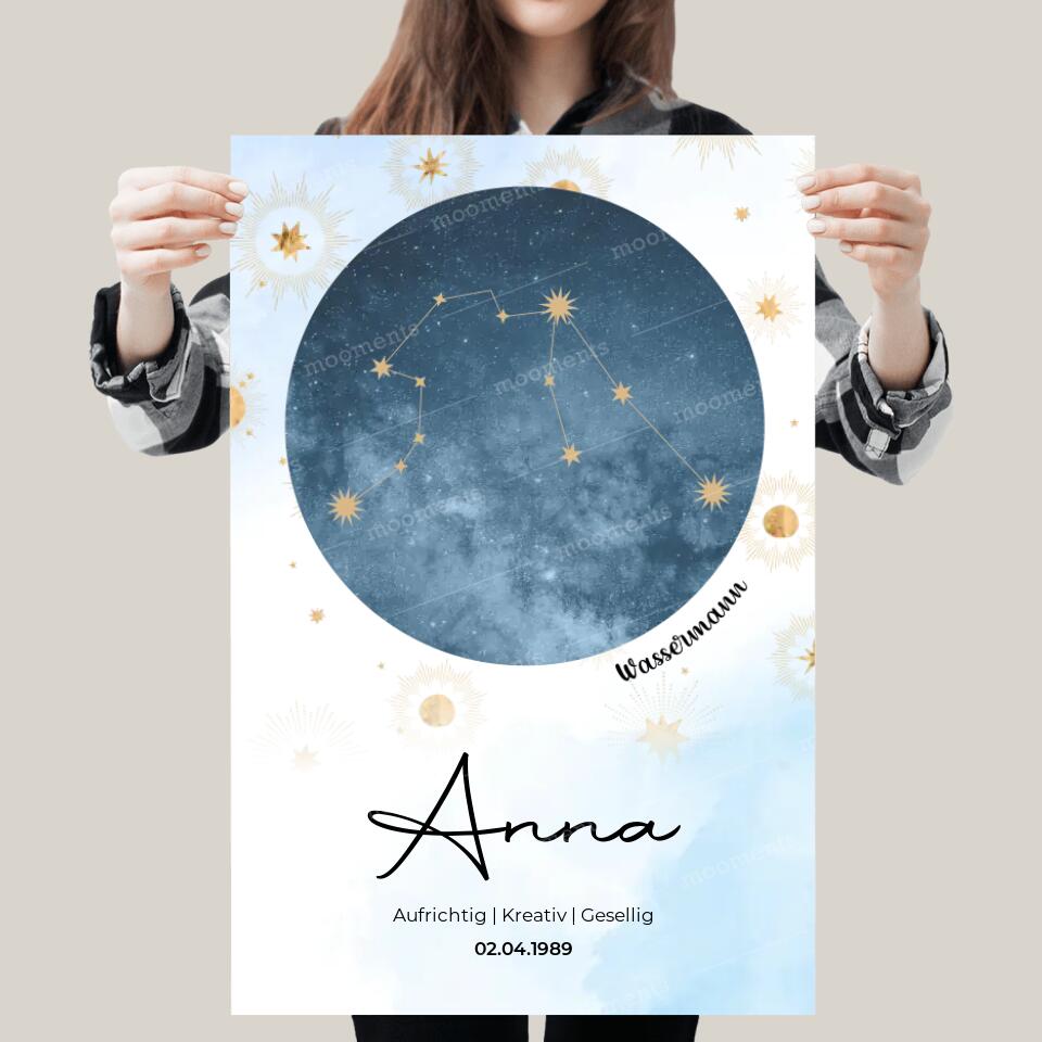 Personalisiertes Sternzeichen mit Name und Datum - Poster