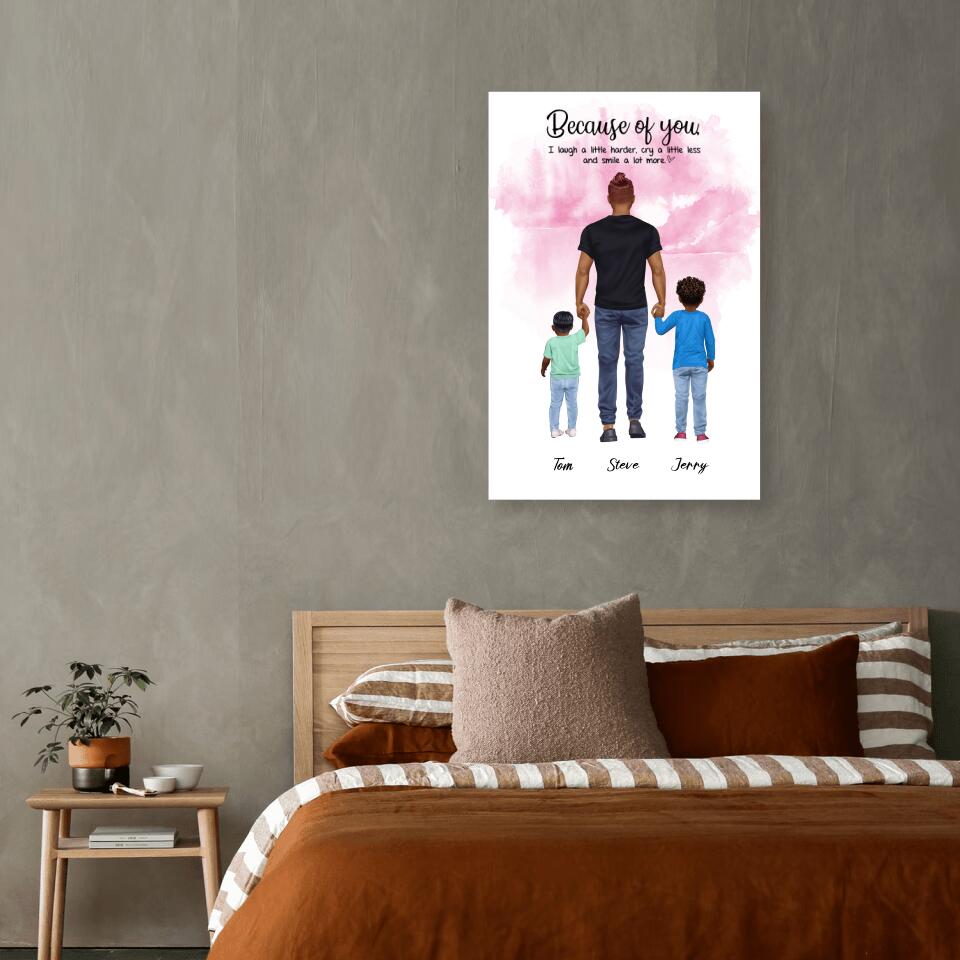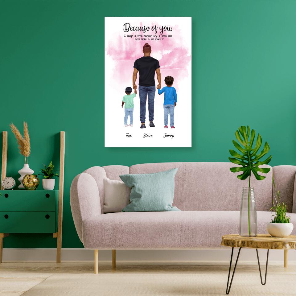 Vater mit zwei Söhnen - personalisiertes Geschenk - Alu-Dibond