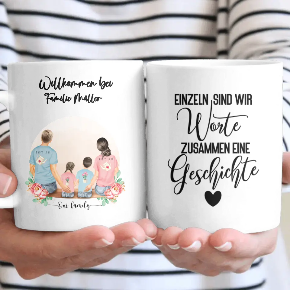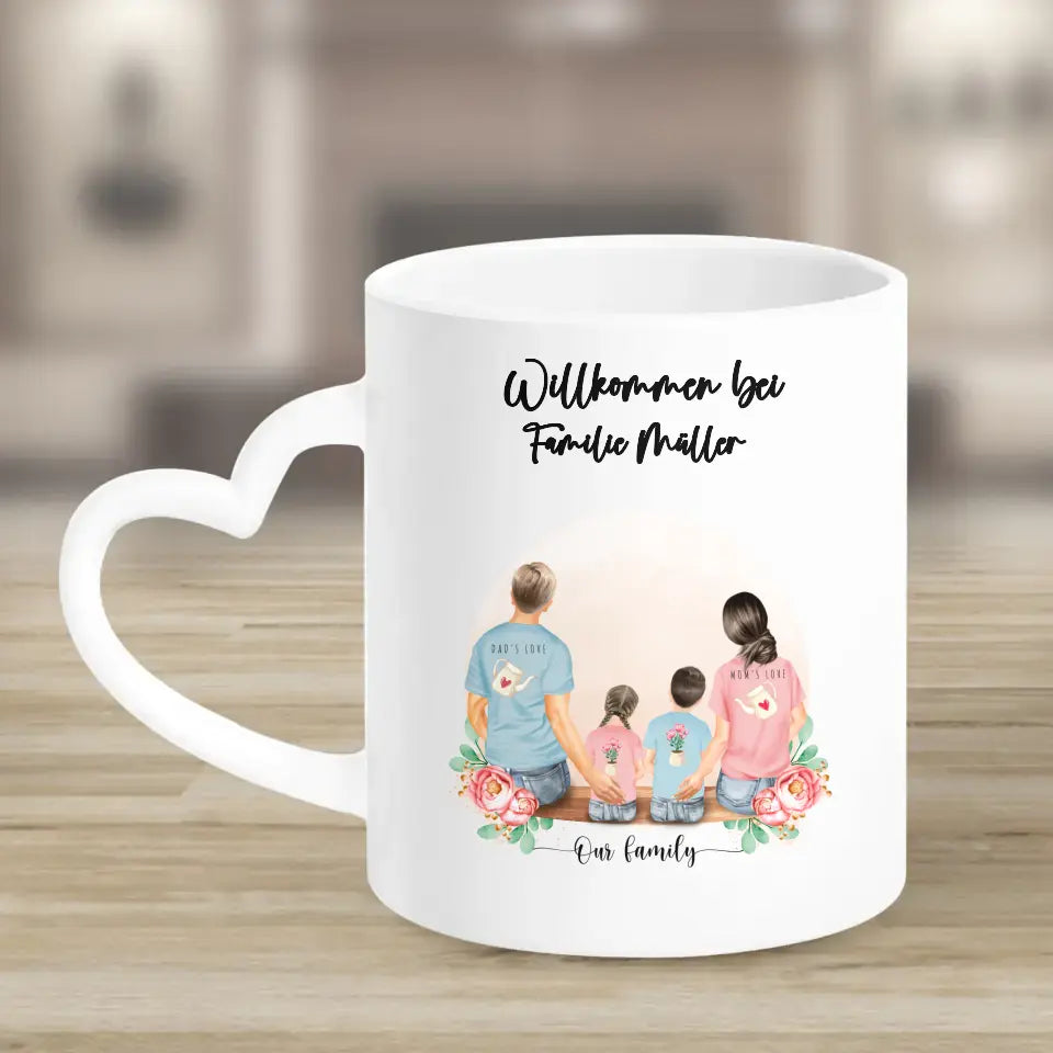 Vater und Mutter mit zwei Kindern - Personalisiertes Geschenk - Herz Tassen