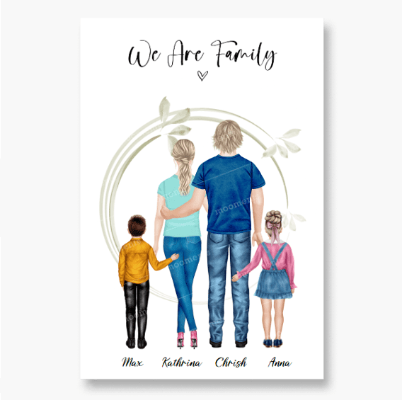 Ehepaar mit Tochter und Sohn - persönliches Wandbild - Poster